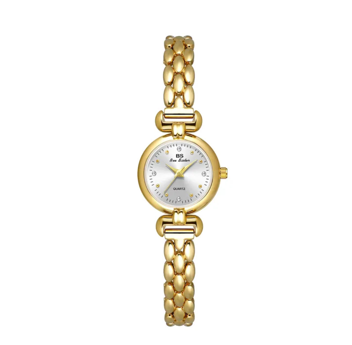 Lyft din stil med denna Glam Retro Jewelry Watch, en perfekt kombination av tidlös elegans och modern glamour. Klockan har ett guldigt armband som ger en lyxig känsla, och den vita urtavlan skapar en stilren kontrast som framhäver designens sofistikerade detaljer.