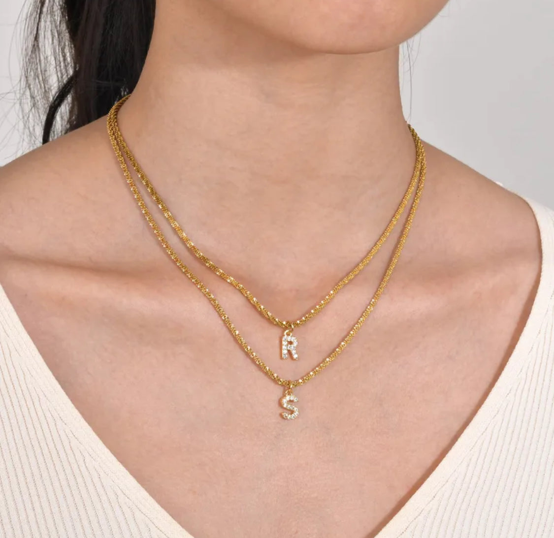 Gör din stil personlig med vårt eleganta bokstavshalsband i hållbart 304 rostfritt stål och mässing. Halsbandet finns med alla bokstäver från A till Z, så du kan bära din egen initial, någon du älskar, eller en bokstav som betyder något extra för just dig.