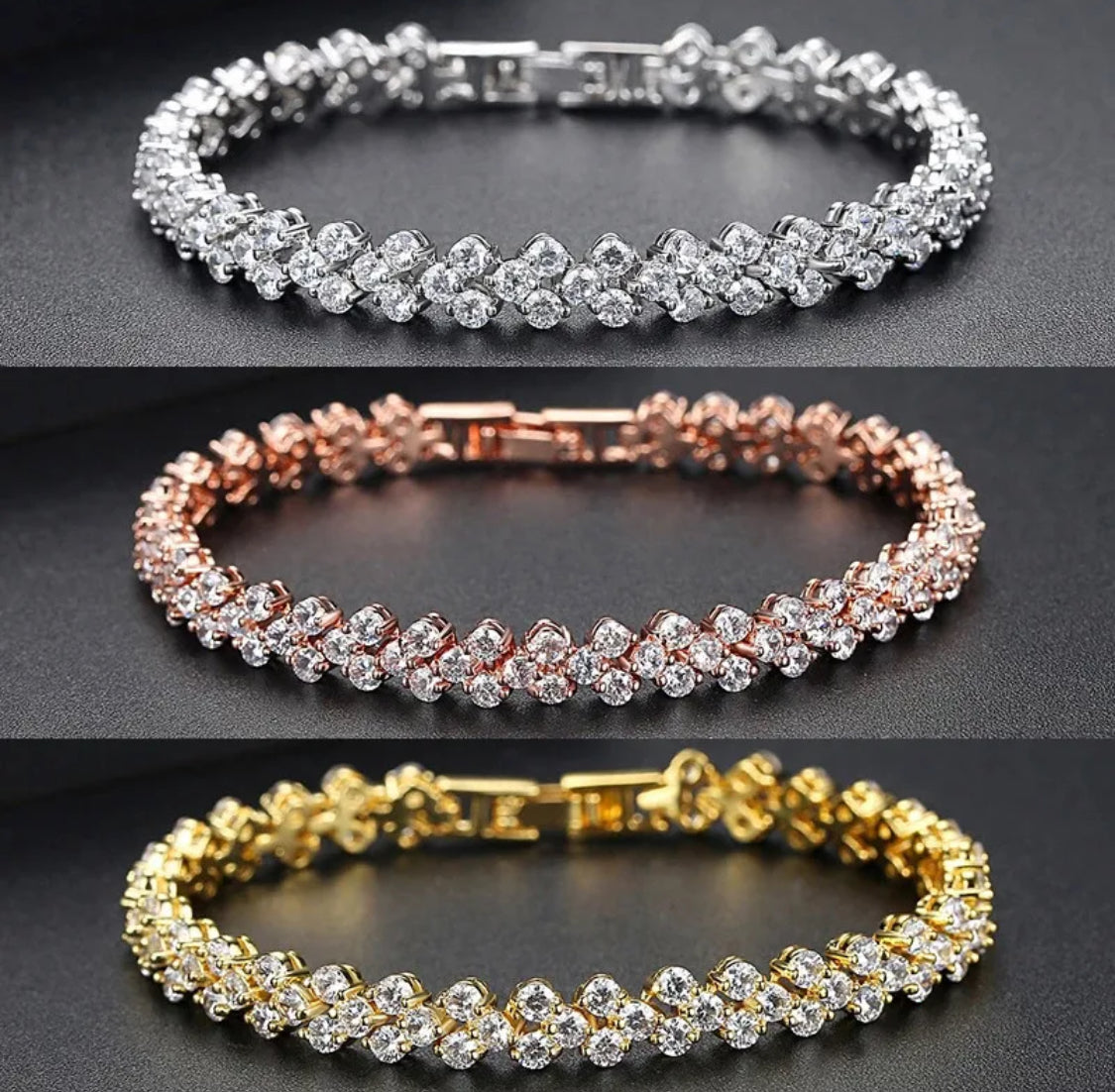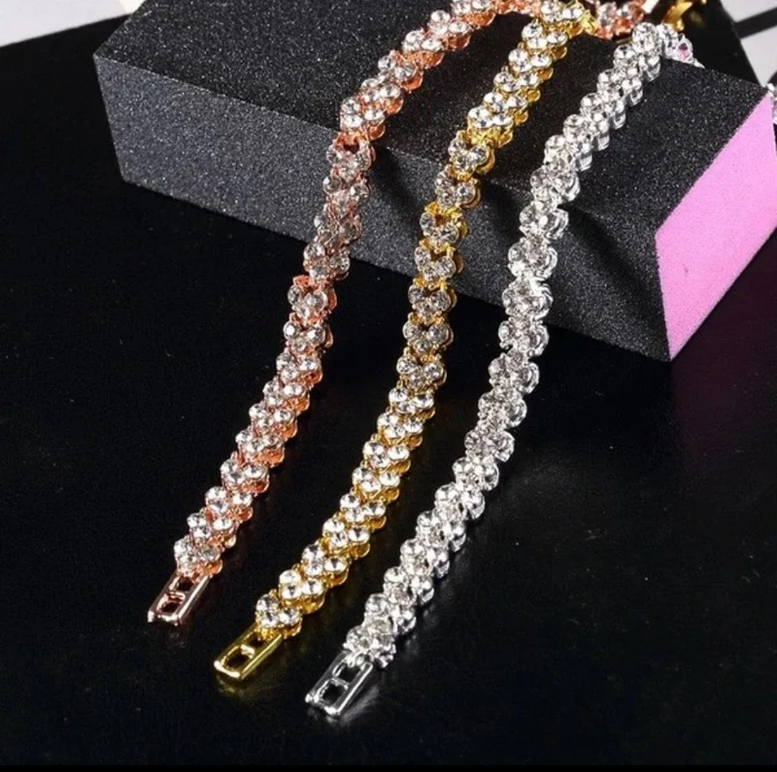 Enkel och elegant hjärtformad kristallarmband – finns i guld, silver och rosé