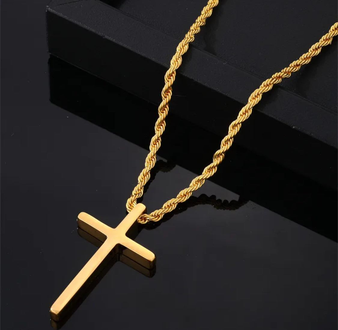 Fira din tro med stil! Detta eleganta kordellhalsband kombinerar tidlös design med hållbar kvalitet. Tillverkat i 304 rostfritt stål, är det både slitstarkt och skinande, perfekt för dagligt bruk utan att tappa sin lyster. Halsbandet pryds av ett klassiskt kors som symboliserar tro, hopp och kärlek.