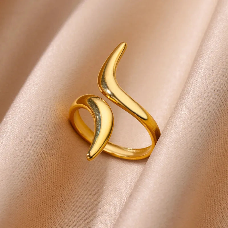 Lyft din stil med detta eleganta 4-pack ringar i guldpläterat rostfritt stål, skapade för dig som älskar moderna och unika accessoarer. Varje ring har sin egen distinkta form – från mjuka, organiska kurvor till stilrena geometriska linjer – vilket gör setet perfekt för dig som vill mixa och matcha efter outfit och humör.