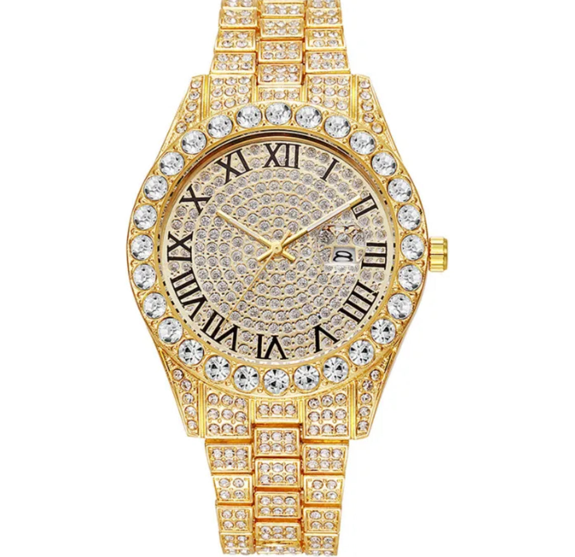 Elegant damklocka med diamantdetaljer och kalenderfunktion