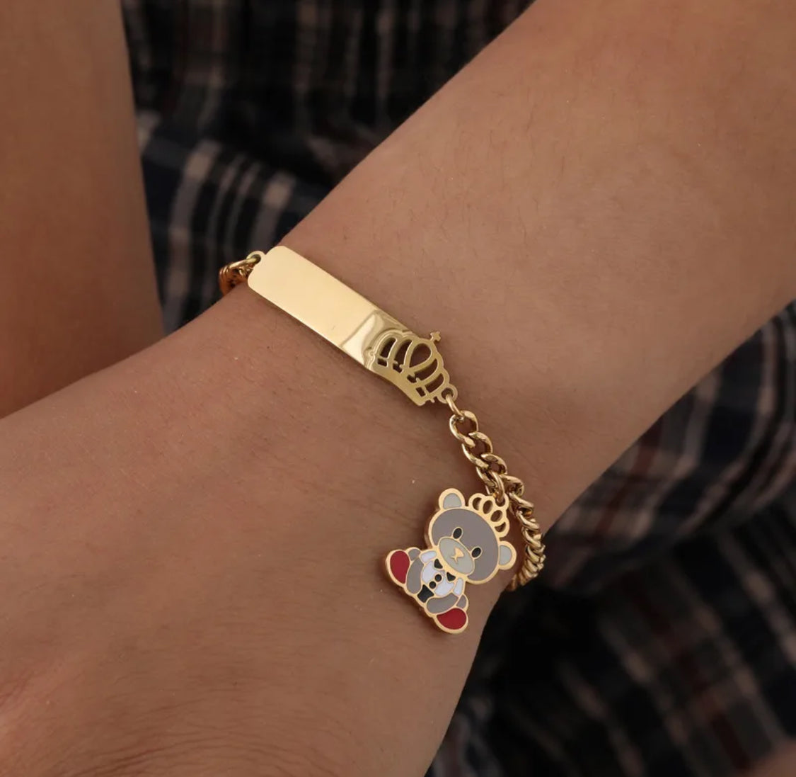 Sött Barnarmband med Björn & Krona – 304 Rostfritt Stål
