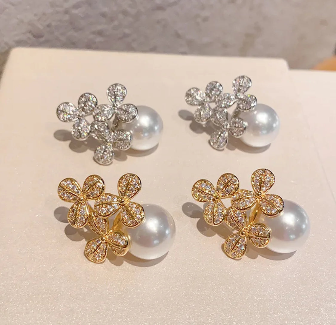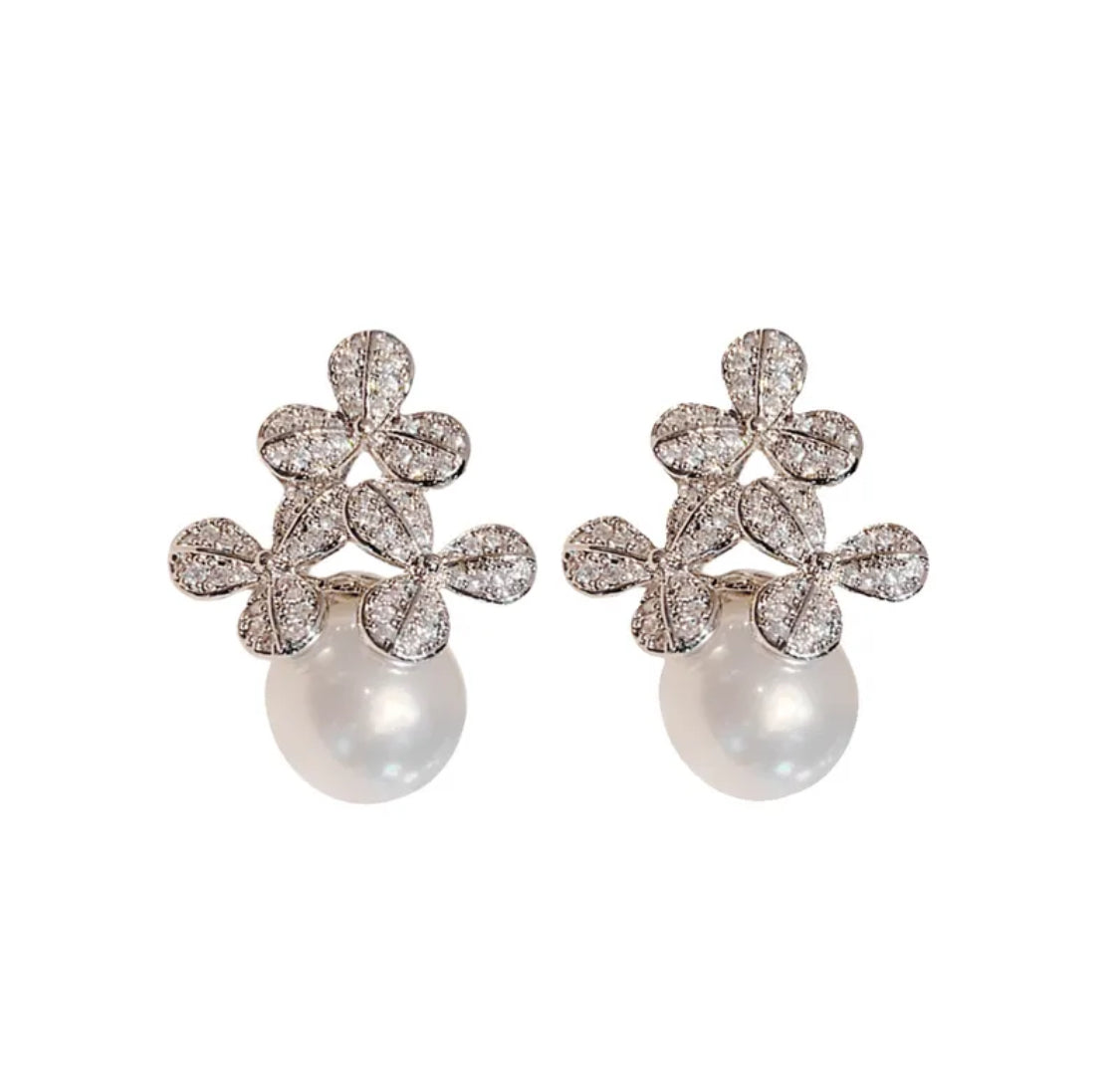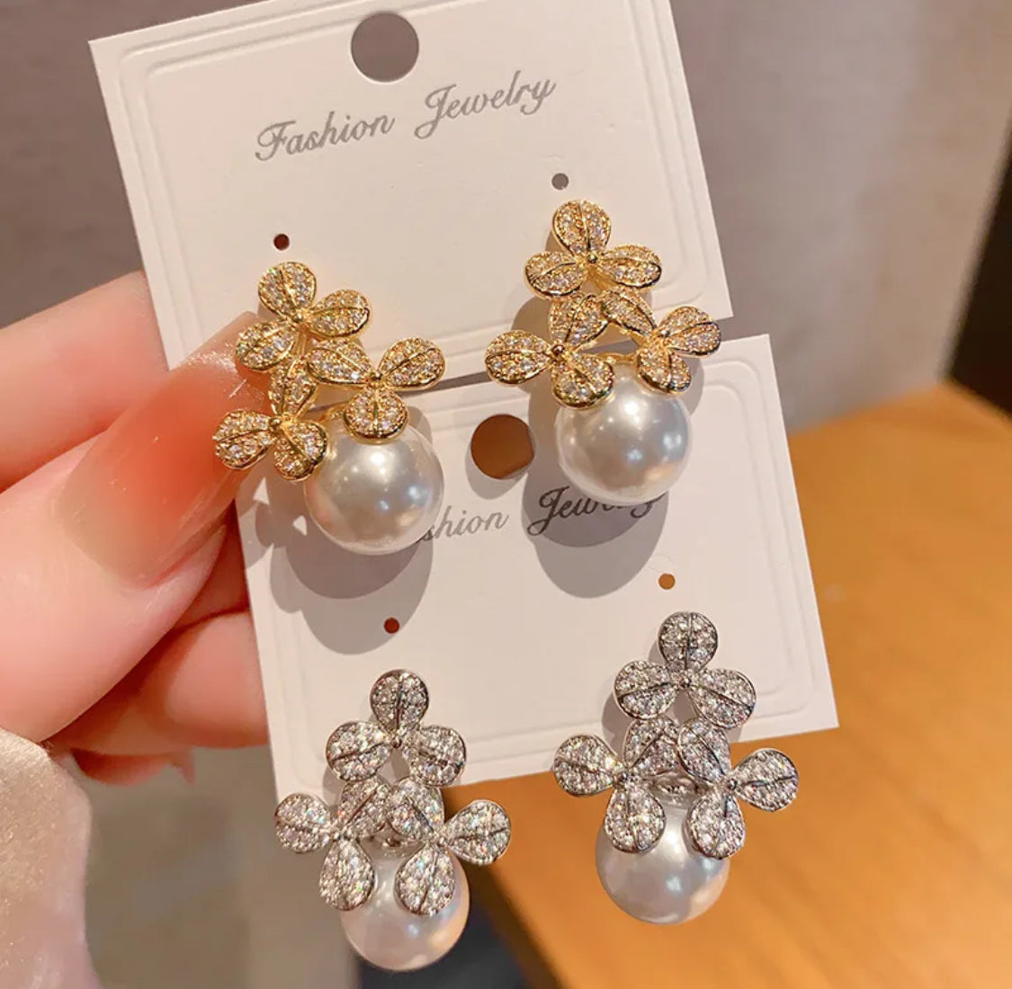 Ge din stil en lyxig och feminin touch med dessa eleganta blomformade pärlörhängen. Örhängena kombinerar gnistrande kristaller med en klassisk pärldetalj som skapar en romantisk och tidlös look. Perfekta för både vardag, fest och speciella tillfällen.