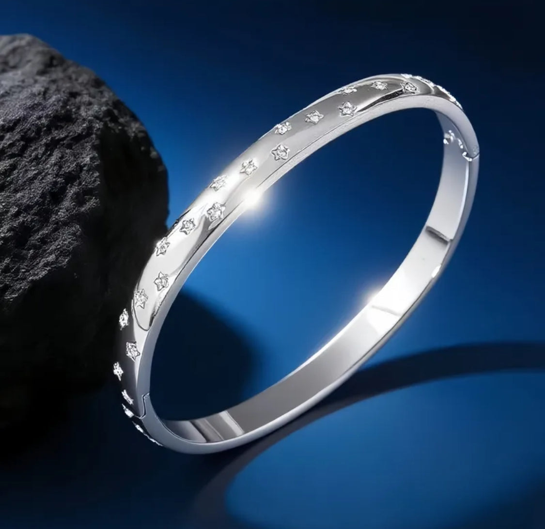 Detta eleganta Starset Bracelet i slitstark titanium steel är skapat för dig som vill bära ett smycke som både är tidlöst och hållbart. De små stjärnorna ger armbandet ett subtilt, glittrande uttryck som lyfter vilken outfit som helst – från vardagligt till uppklätt.